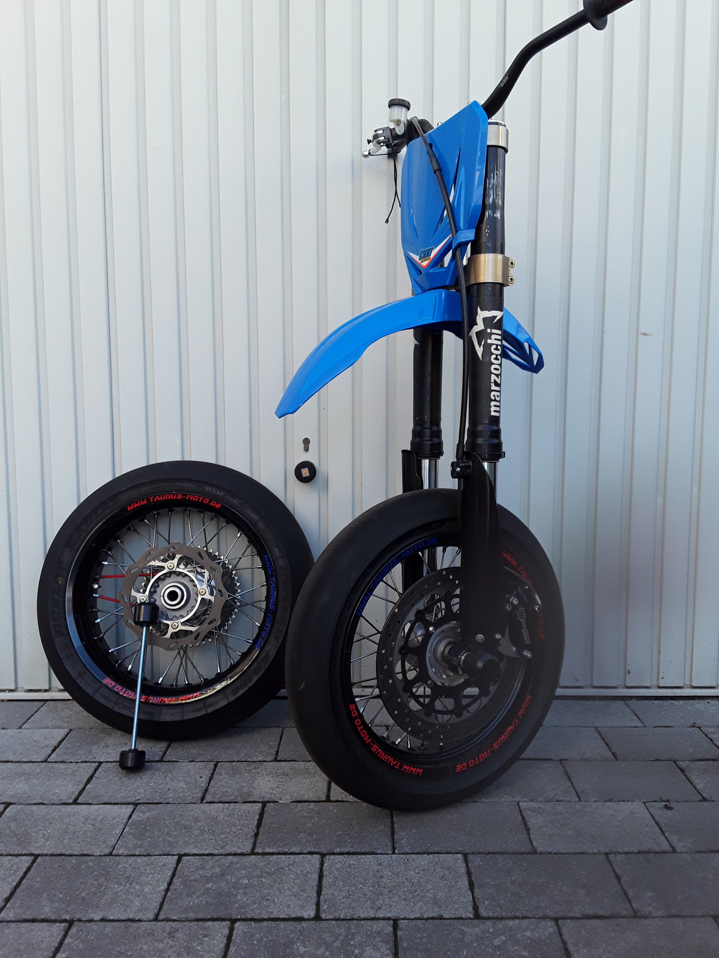 el Bacco Posted September 27, 2018 Report Share Posted September 27, 2018 Hallo Leute, ich biete mein "Supermoto-Setup zum Umrüsten" an! Welches für meine 2015er TM EN 300 vom Fachmann vor der Saison 2017 angefertigt wurde! Teilweise Neu- und Gebrauchtteile Dieses Setup wurde nach der Fertigstellung nie benutzt! Hier eine grobe Zusammenfassung: Vorne -TM Lenker -TM Sumo Gabelbrücke Gold -Marzocchi Closed Cartridge MX Gabel (Optische Macken wegen MX-einsatz; war beim Fahrwerksbauer für Sumoeinsatz und Fahrergewicht ca 100kg, nicht eingekürzt) -Felge 16,5 3,5 Behr auf Husqvarnanabe mit entspr. Hülsen + Bremsscheibe -Bremse Motomaster 4 Kolben NEU mit Adapter + Bremspumpe Magura mit Hebel und Leitung von Smr450 -Achsprotektoren -Plastics wie auf dem Bild zu sehen Hinten -Behr Felge 17 5,5 auf Husqvarnanabe mit entspr. Hülsen + Bremsscheibe und Kettenblatt 47 Zähnen -Achsprotektoren Auf beiden Felgen sind Dunlop Slicks die schon gebraucht und älter sind und geschenkt mitgehen... Habe auch noch Reifenwärmer bei Interesse Verhandlungsbasis für das gesamte Setup sind 1299 EUR wie in meiner Anzeige beschrieben, bin natürlich gesprächsbereit! https://www.ebay-kleinanzeigen.de/s-anzeige/supermoto-felgen-und-komplettes-setup/953713131-306-16333 Bei Interesse, Fragen , Wunsch von Detaisbildern gerne PM oder anrufen!! 01781035925 Bin fast immer zu erreichen Ich würde das Setup am liebsten "am Stück" verkaufen, weil es Schade wäre alles zu zerrupfen... Selbstverständlich verkaufe ich aber auch die Komponenten einzeln! Ich bin nicht halb so tief in der Materie wie viele hier aber werde mir, wenn ihr mich ansprecht, größte Mühe geben euch mit Daten, Maßen und so weiter zu versorgen... Gruß Florian Quote Link to comment Share on other sites More sharing options...